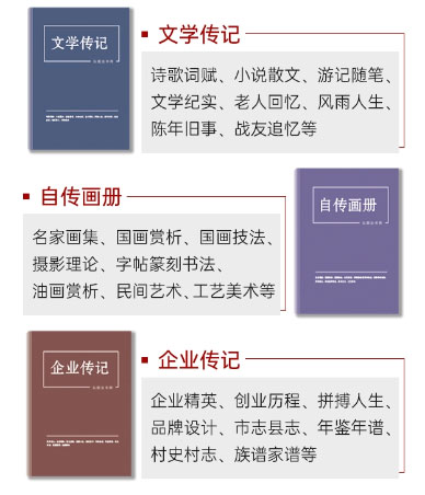 个人出版:文学读物、散文、小说、画册、传记等图书出版
